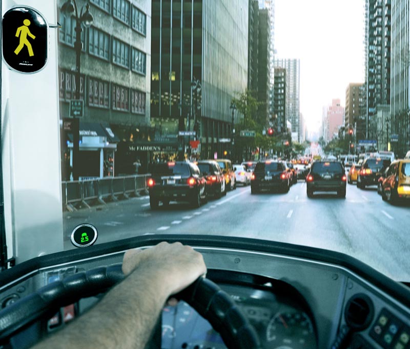 El sistema Shield + posee un enfoque centrado en la detección de peatones y está diseñado especialmente para autobuses y vehículos de gran porte que operan en entornos urbanos.